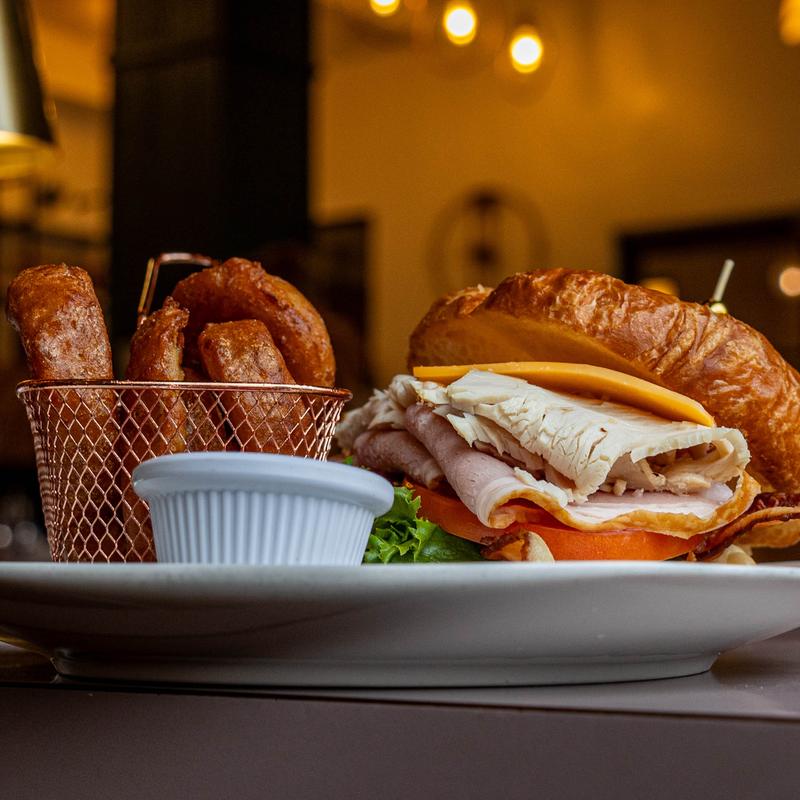 Fresh carved turkey, Swiss cheese, tomato & avocado w/ mayo served on sourdough.
